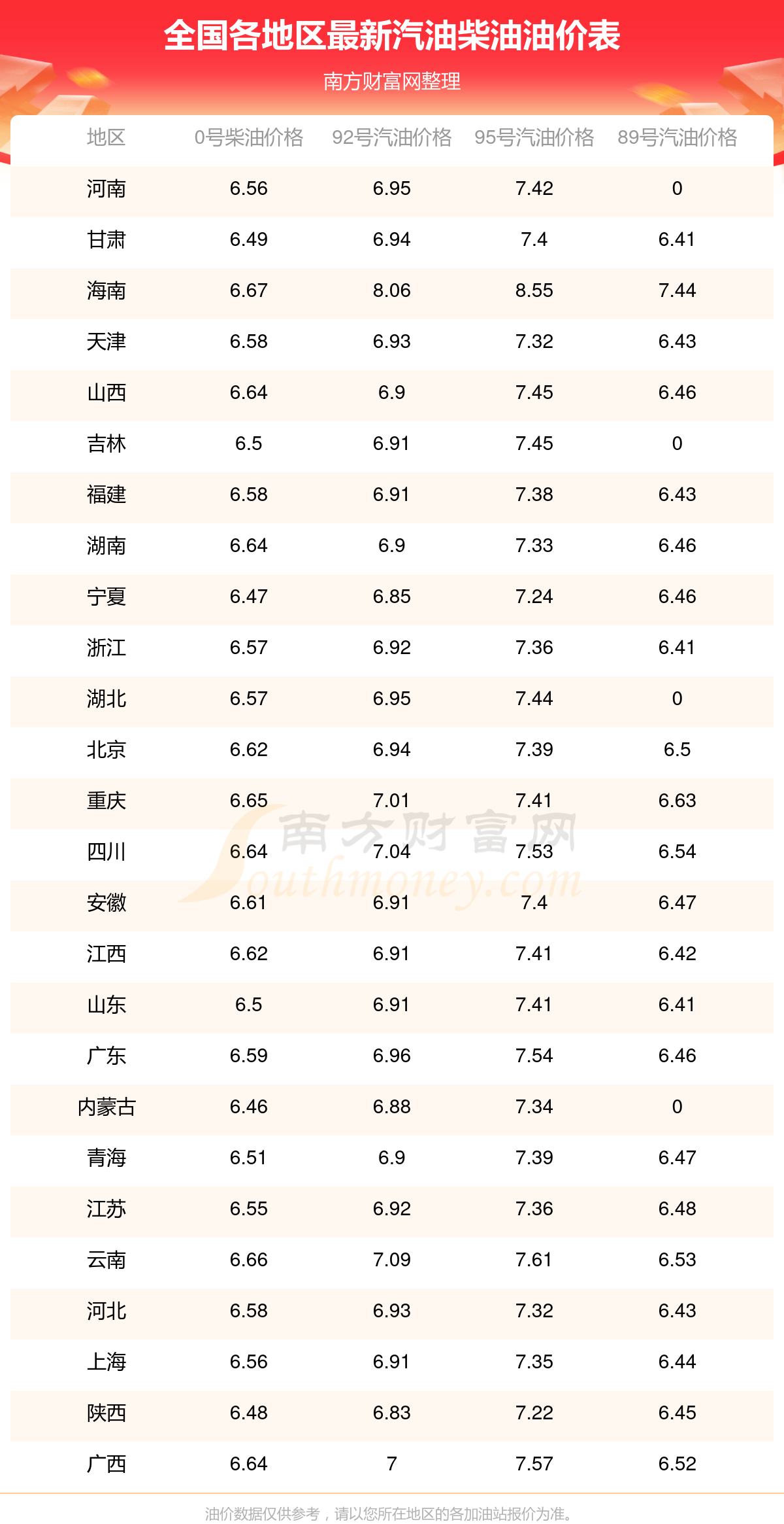 以上数据仅供参考,请以您所在地区的加油站实际售价为准。开云手机web版登录入口发布此信息的目的在于传播更多信息,对使用该油价信息所导致的结果概不承担责任。