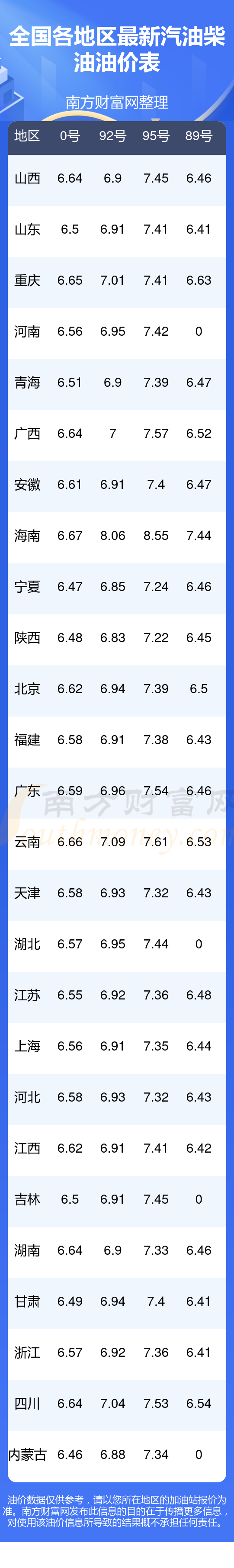 全国95号汽油最新平均价格为:7元每升,其中,最低为陕西,价格为7.22元/升,最高为海南,价格为8.55元/升。