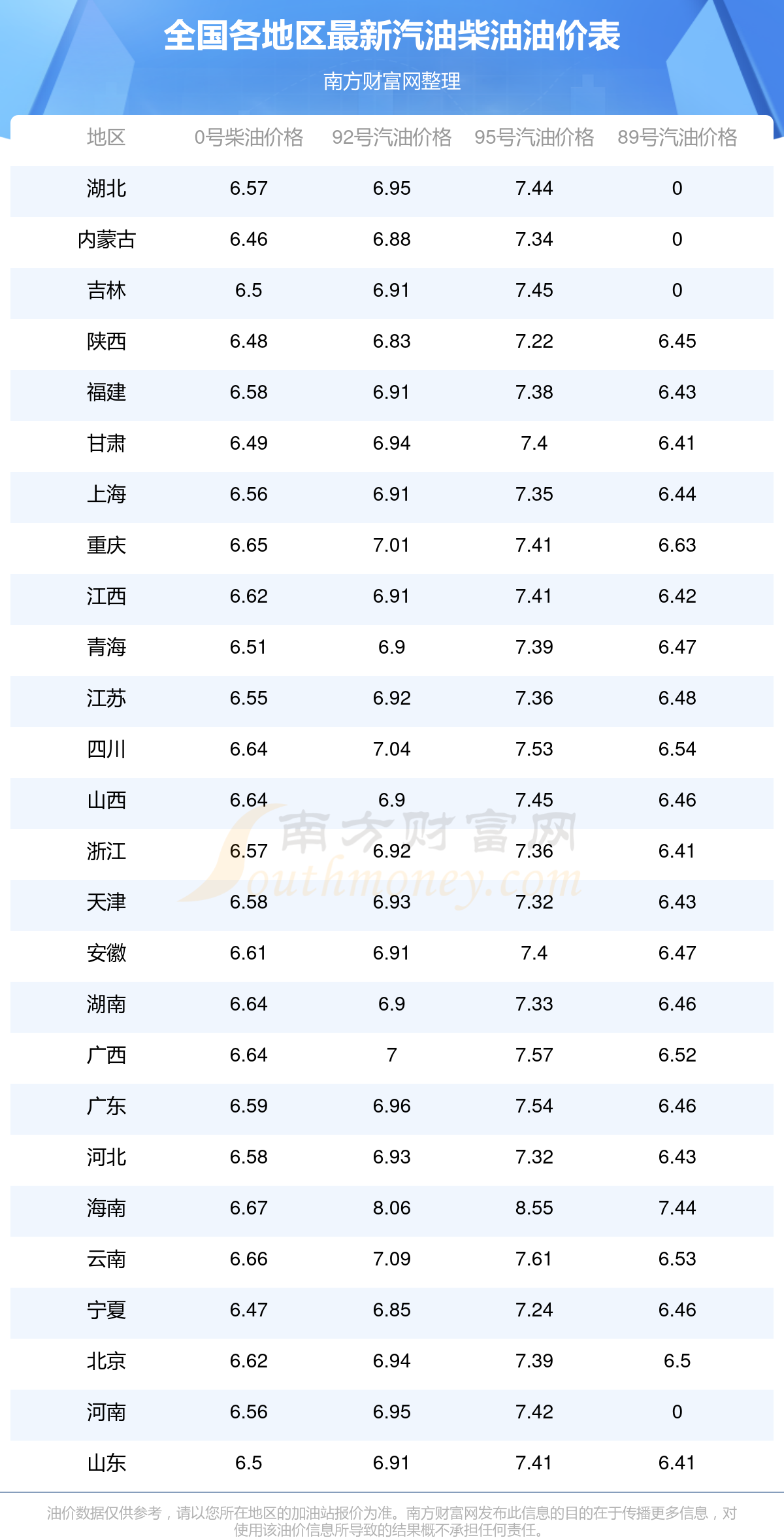以上数据仅供参考,请以您所在地区的加油站实际售价为准。开云手机web版登录入口发布此信息的目的在于传播更多信息,对使用该油价信息所导致的结果概不承担责任。