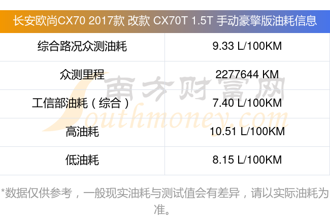 数据仅供参考,一般现实油耗与测试值会有差异,请以实际油耗为准。