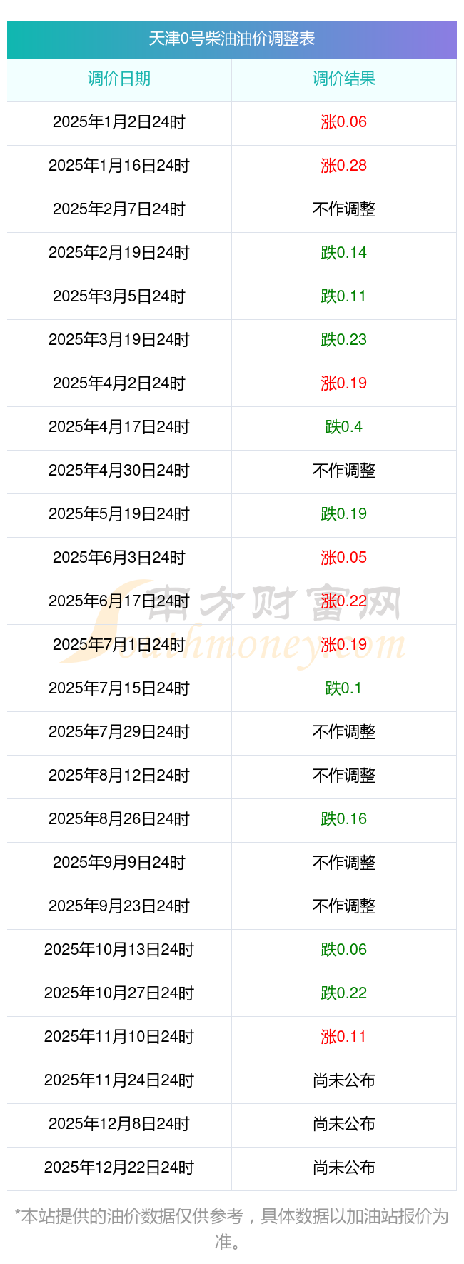 2025年油价调整时间一览表及价格