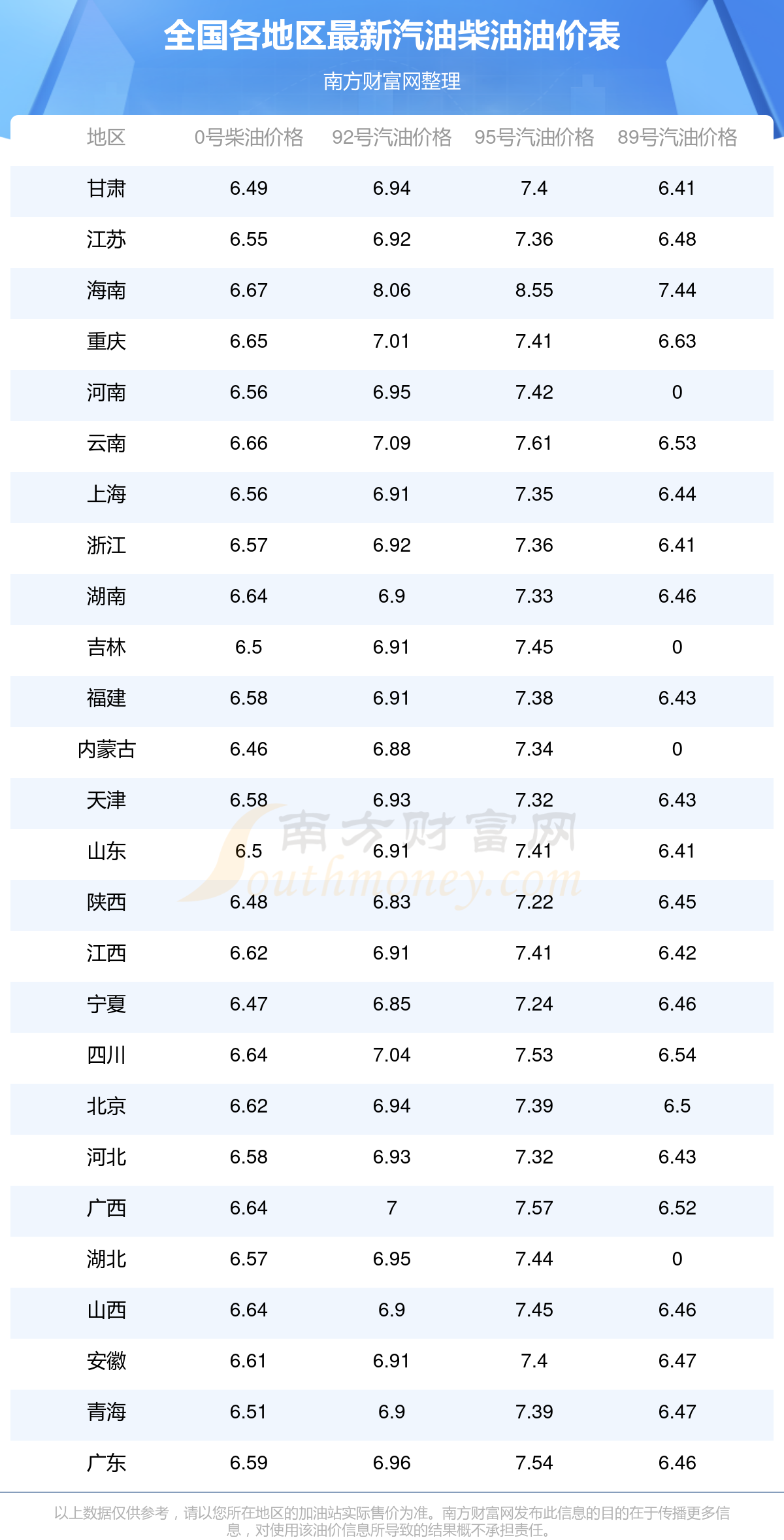 以上数据仅供参考,请以您所在地区的加油站实际售价为准。开云手机web版登录入口发布此信息的目的在于传播更多信息,对使用该油价信息所导致的结果概不承担责任。