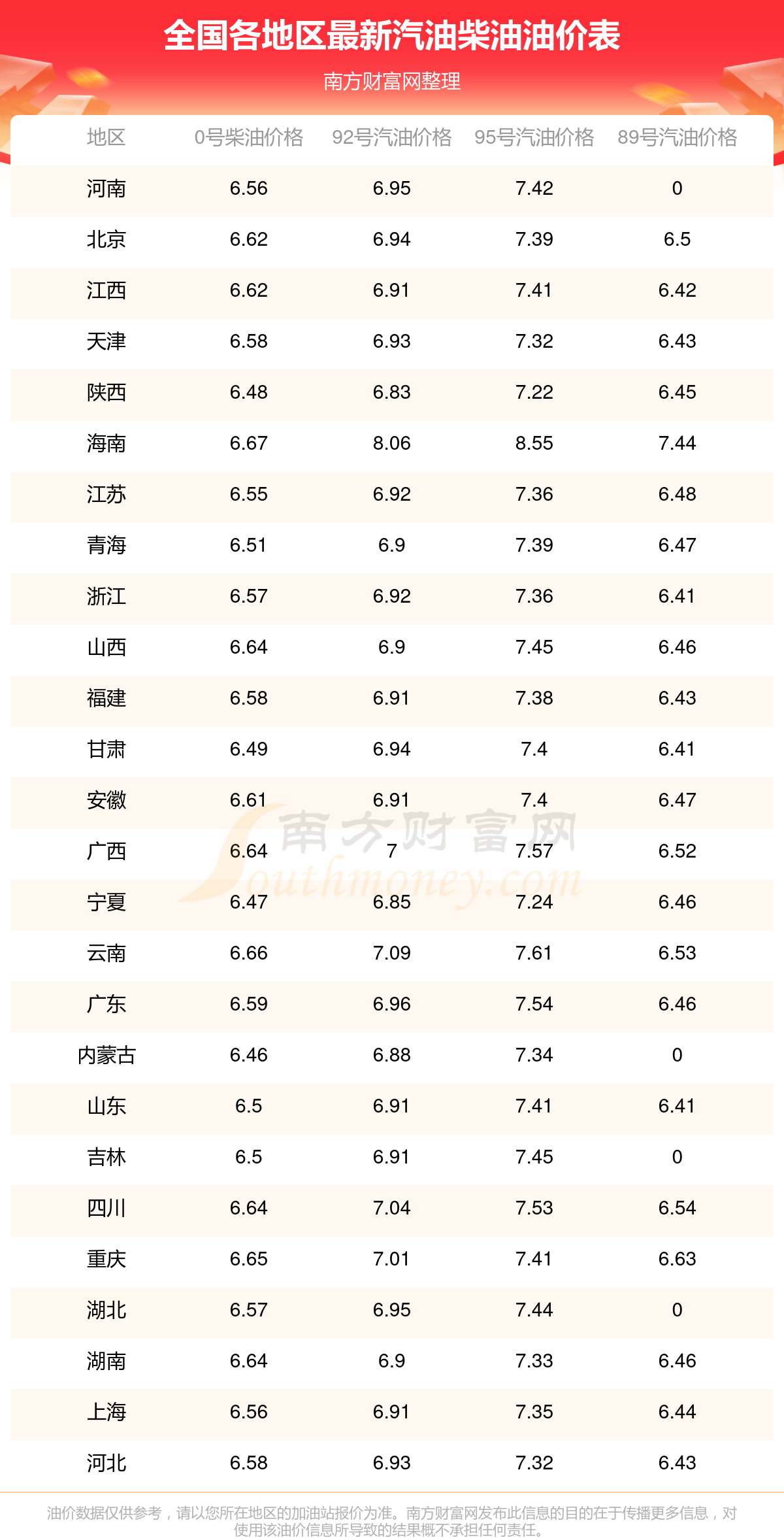 以上数据仅供参考,请以您所在地区的加油站实际售价为准。开云手机web版登录入口发布此信息的目的在于传播更多信息,对使用该油价信息所导致的结果概不承担责任。