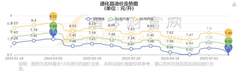 通化县汽油、柴油11月18日的价格是多少钱一升?详情为:92号汽油为6.91元,上涨了0.11元;95号汽油为7.45元,上涨了0.11元;0号柴油为6.5元,上涨了0.1元,本次油价的调整时间为11月11日。