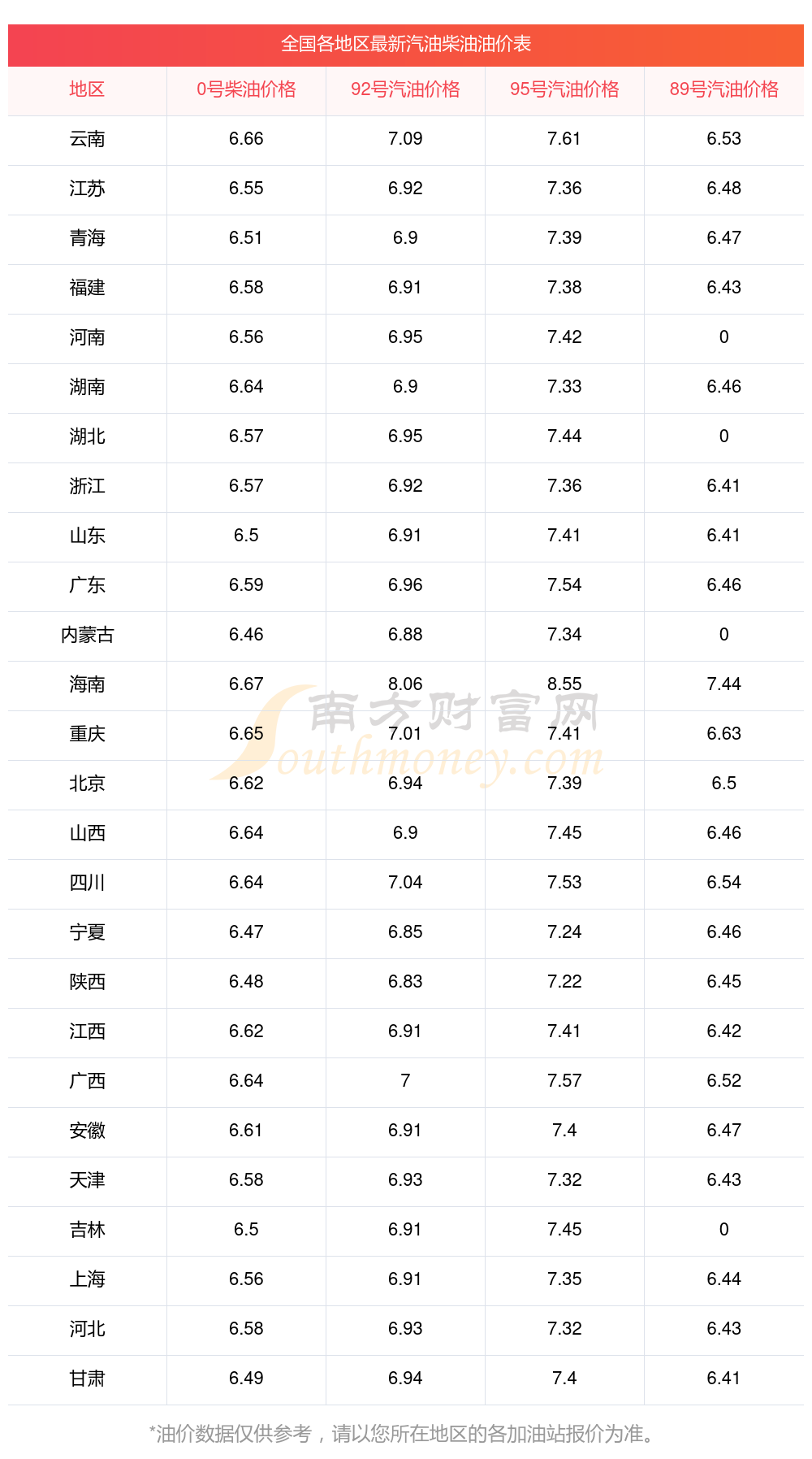以上数据仅供参考,请以您所在地区的加油站实际售价为准。开云手机web版登录入口发布此信息的目的在于传播更多信息,对使用该油价信息所导致的结果概不承担责任。
