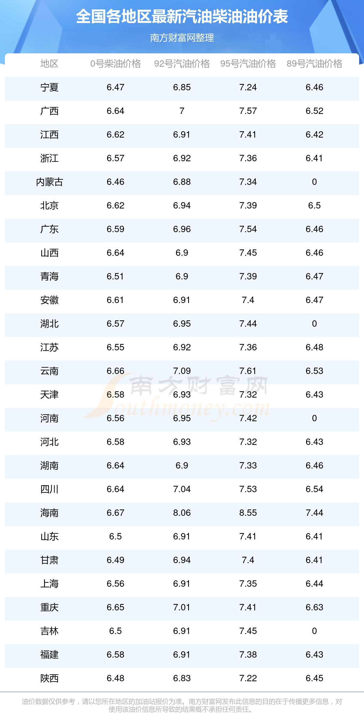 11月18日全国95号汽油每升的价格:调整时间为11月11日,平均价格为7元/升,最低的是陕西,价格7.22元/升,最高的是海南,价格8.55元/升。,下一轮油价调整时间11月24日24时,距离现在还有6.59天。