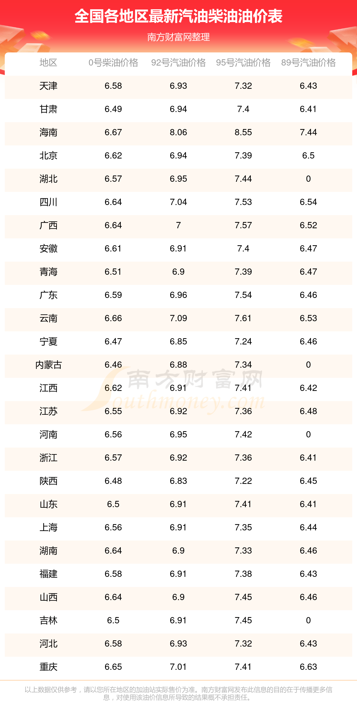 油价数据仅供参考,请以您所在地区的各加油站报价为准。