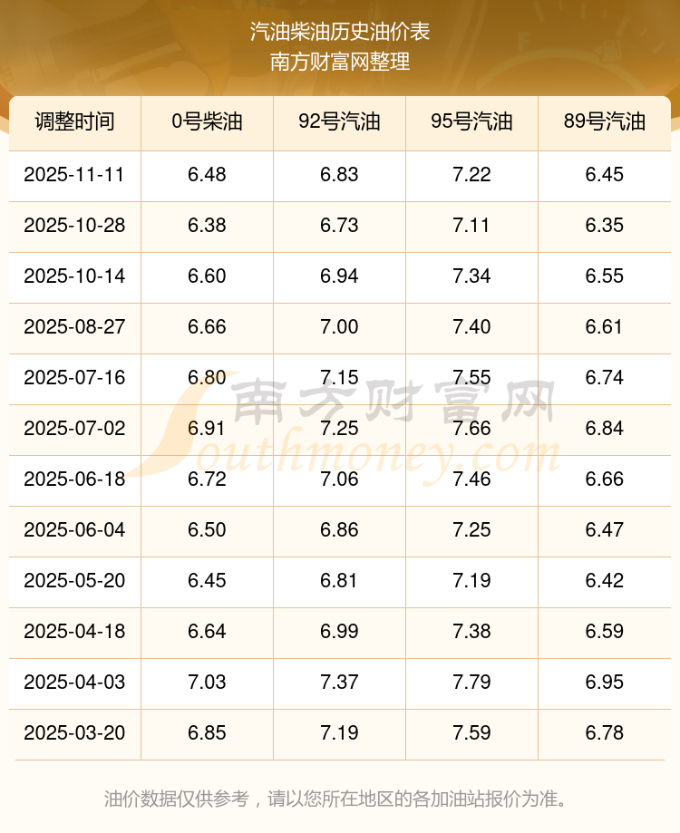 11月18日商洛95号汽油的价格为7.22元/升,本轮油价的调整时间为11月11日,相对上一轮油价调整时间10月28日的价格7.11元/升,上升了0.11元,上升幅达1.547%。下一轮油价调整时间11月24日24时,距离现在还有6.57天。