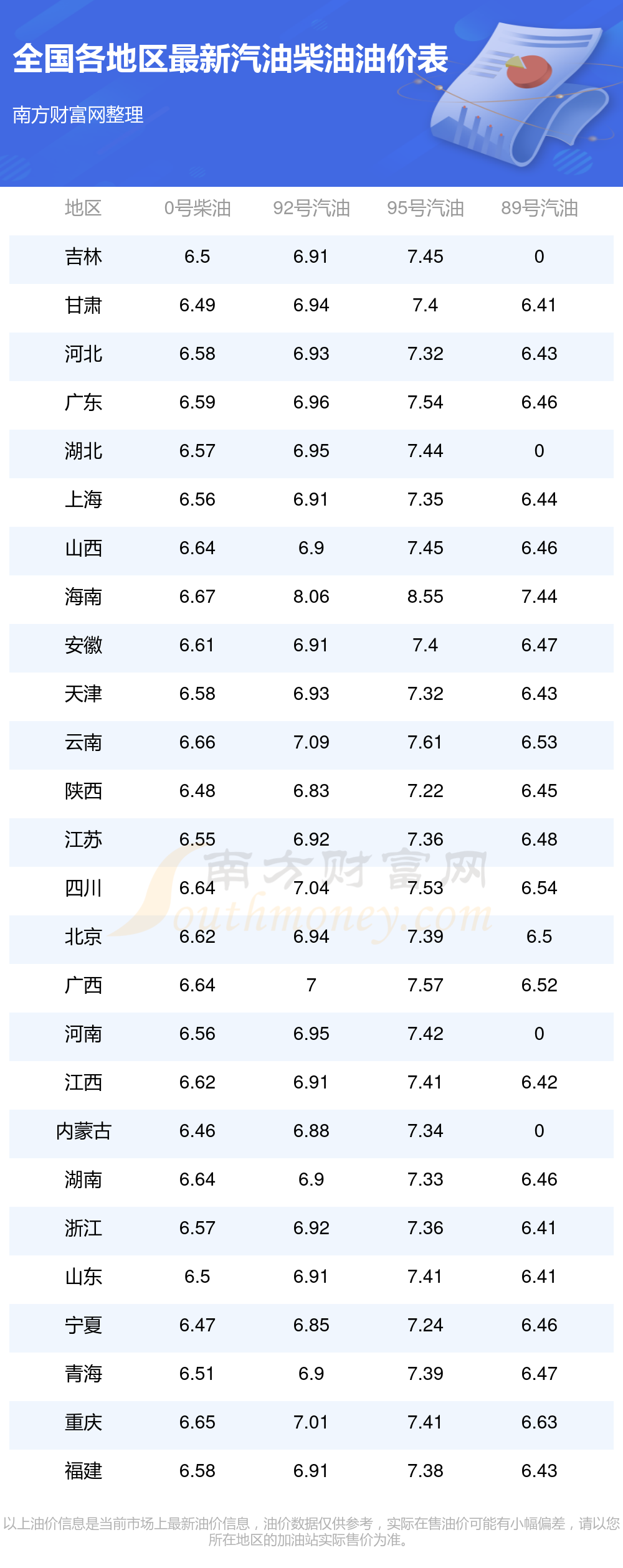 2025年11月18日全国油价调整及最新汽油价格表