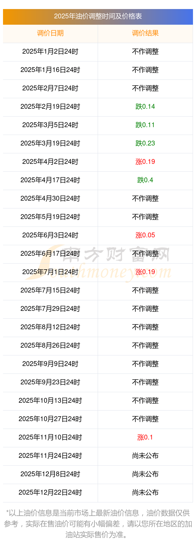 油价调整最新消息:大安汽油、柴油11月18日的价格是多少钱一升?详情为:92号汽油为6.91元,上调了0.11元;95号汽油为7.45元,上调了0.11元;0号柴油为6.5元,上调了0.1元,本次油价的调整时间为11月11日。大安下一轮油价调整时间11月24日24时,距离现在还有6.55天。