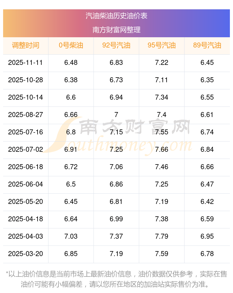 11月18日榆林92号汽油的价格为11月11日调整后的价格,具体为:6.83元每升,相对上次调整时间10月28日的油价6.73元每升,上涨了0.1元,上涨幅达1.486%。下一轮油价调整时间11月24日24时,距离现在还有6.52天。