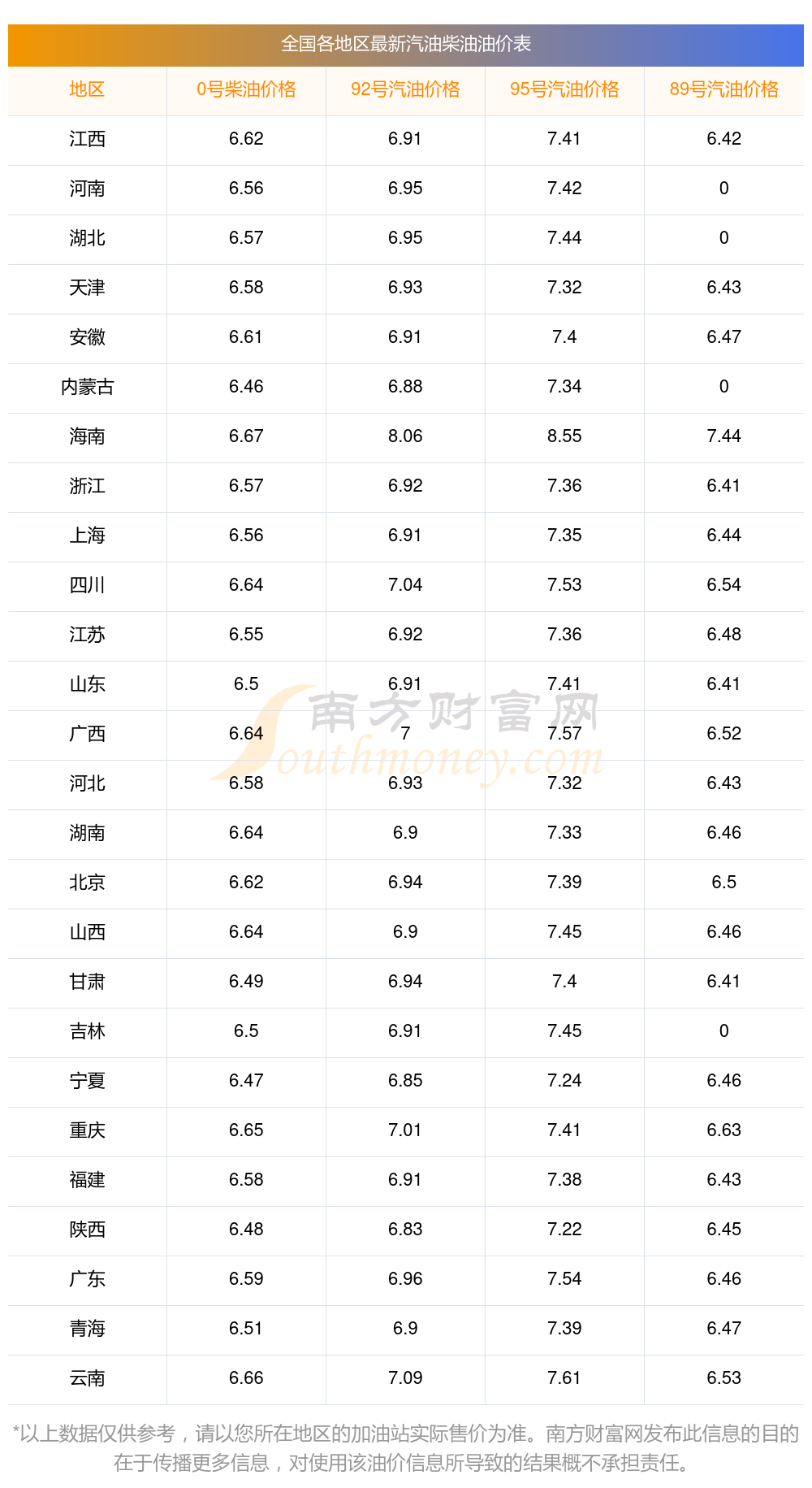 以上油价信息是当前市场上最新油价信息,油价数据仅供参考,实际在售油价可能有小幅偏差,请以您所在地区的加油站实际售价为准。