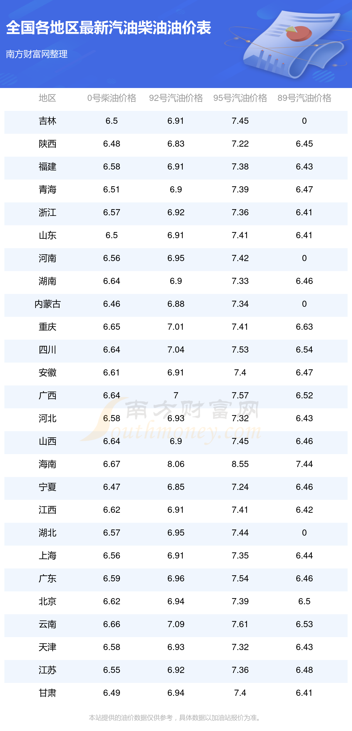 以上数据仅供参考,请以您所在地区的加油站实际售价为准。开云手机web版登录入口发布此信息的目的在于传播更多信息,对使用该油价信息所导致的结果概不承担责任。