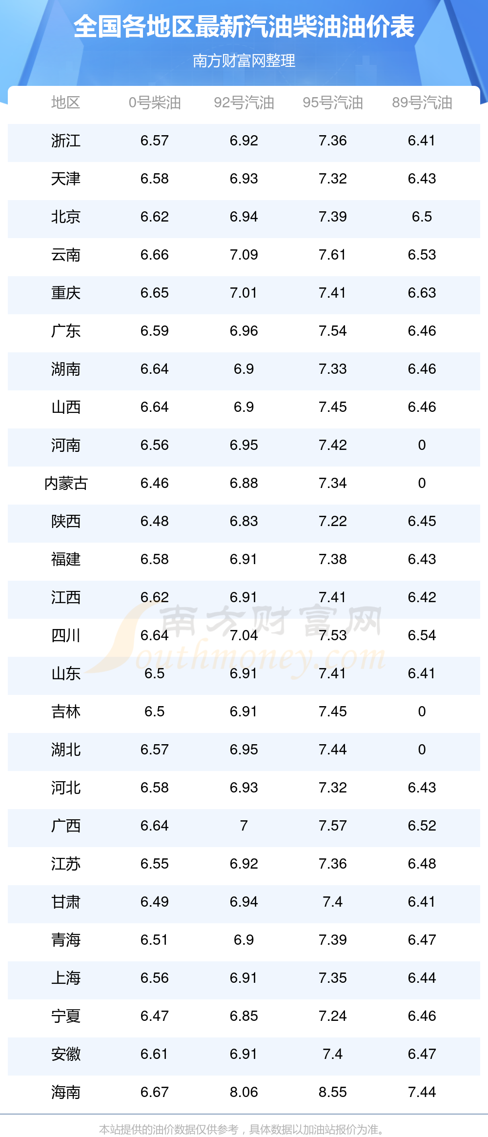 本站提供的油价数据仅供参考,具体数据以加油站报价为准。