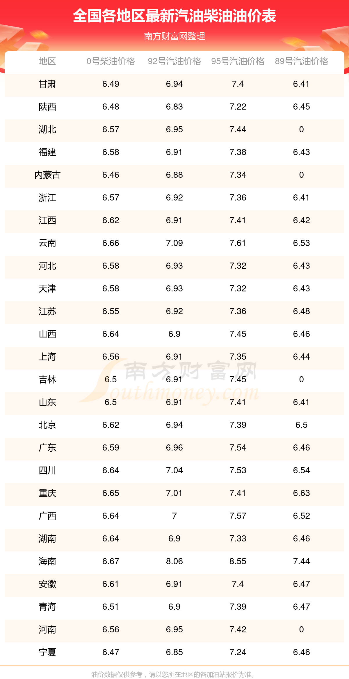 本站提供的油价数据仅供参考,具体数据以加油站报价为准。