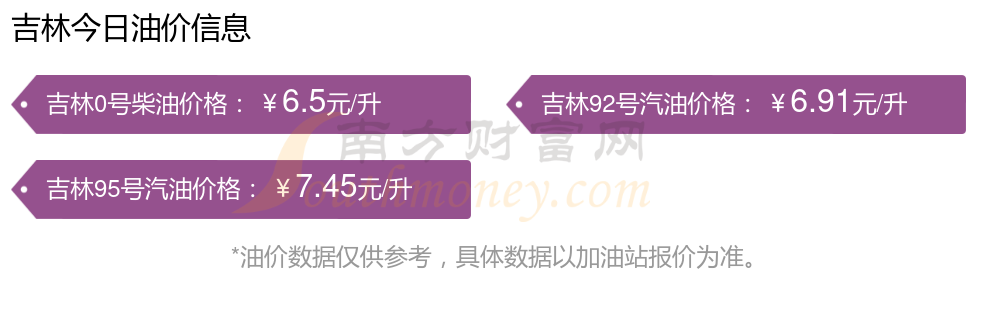 油价调整最新消息:下一轮油价调整时间11月24日24时。11月18日吉林汽油、柴油的价格为11月11日调整后的价格。每升最新价格为:92号汽油6.91元,升了0.11元;95号汽油7.45元,升了0.11元;0号柴油6.5元,升了0.1元。