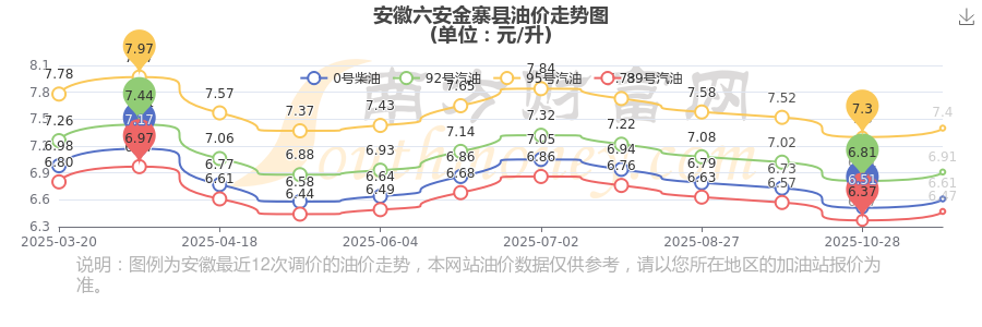 安徽六安金寨县11月18日92号汽油历史油价调整走势图