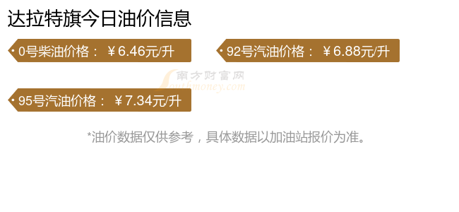 油价调整最新消息:下一轮油价调整时间11月24日24时。达拉特旗汽油、柴油11月18日每升的价格为(本轮油价调整时间为11月11日):92号汽油6.88元;95号汽油7.34元;0号柴油6.46元。