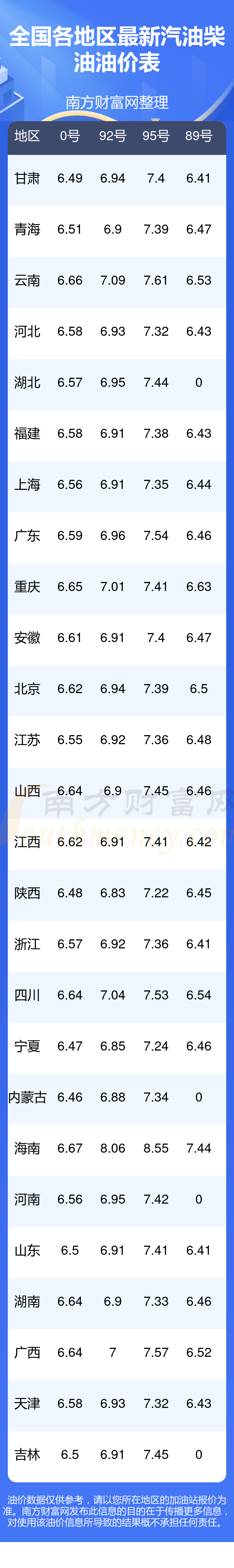 11月18日全国各地区汽油今日油价?