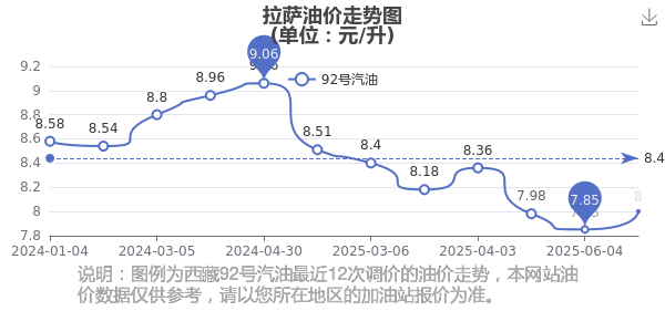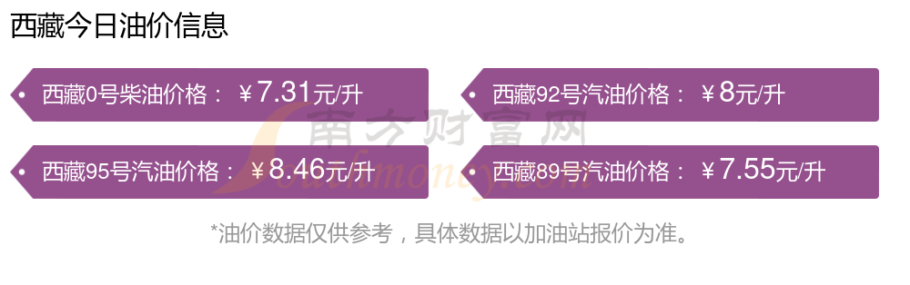 11月18日拉萨汽油、柴油每升价格:距离最近的油价调整时间是11月11日。