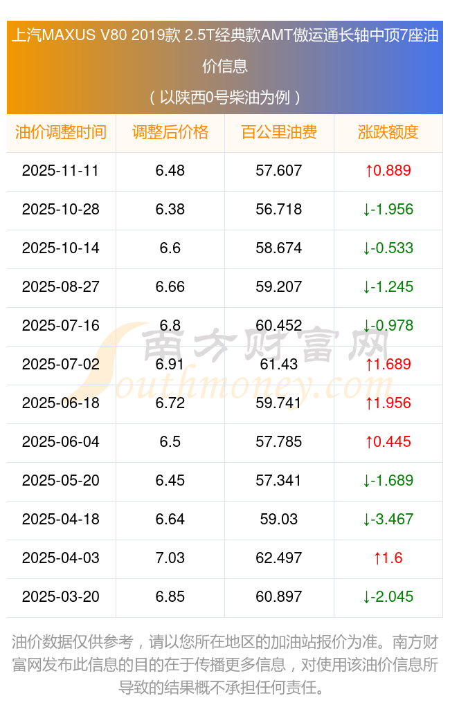 该车型目前采用的是2.5T136马力L4涡轮增压发动机,6挡AMT自动档的变速箱,按0号柴油当前最新价格6.48元/升来计算(以陕西为例),平均油费为0.576072元每公里。厂家参考价为13.48万元。