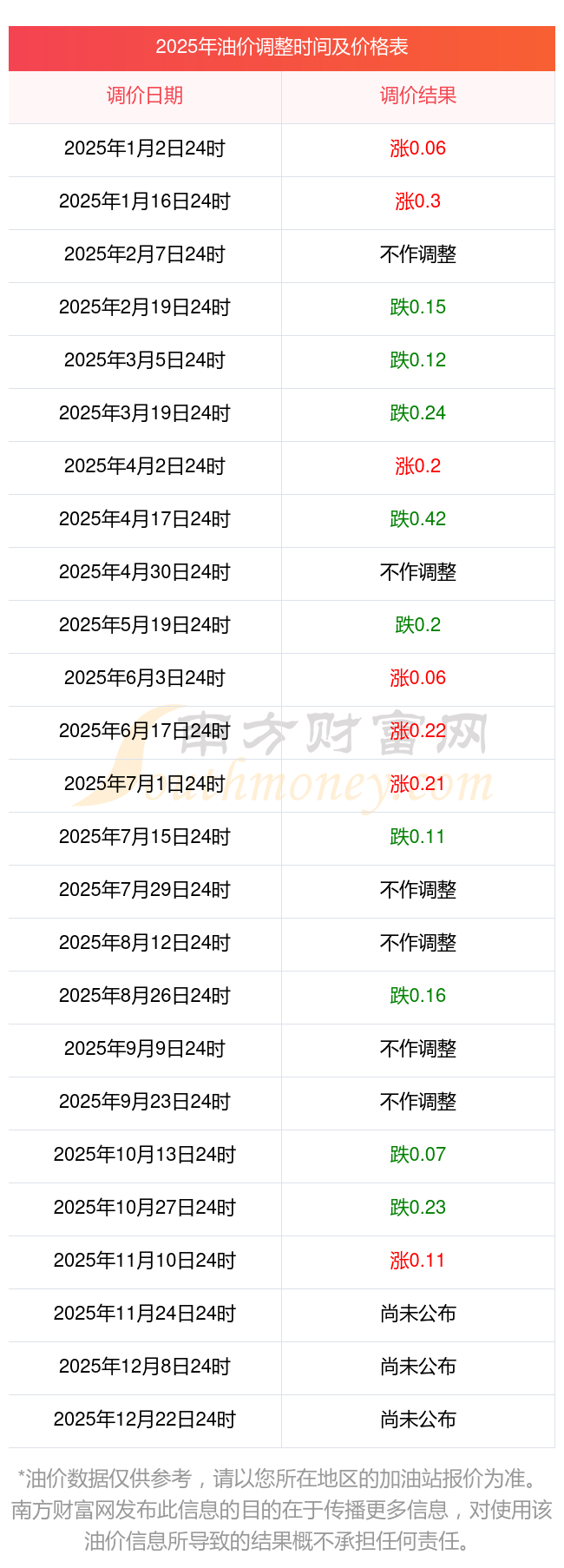 2025年宝安区油价调整时间表