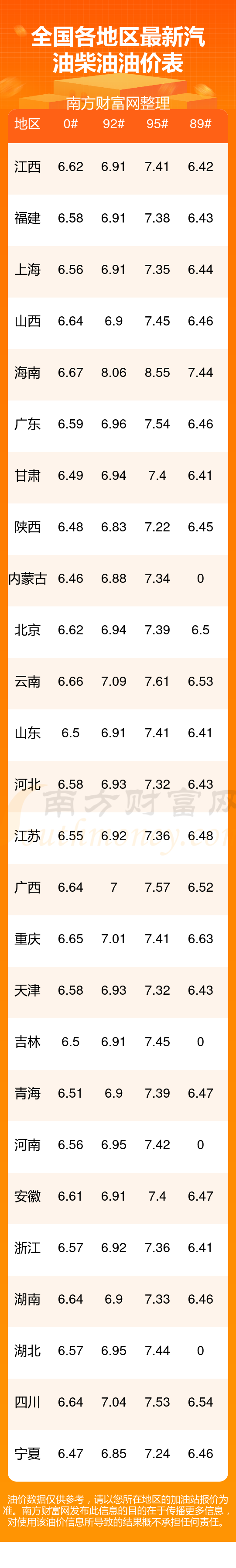 以上数据仅供参考,请以您所在地区的加油站实际售价为准。开云手机web版登录入口发布此信息的目的在于传播更多信息,对使用该油价信息所导致的结果概不承担责任。