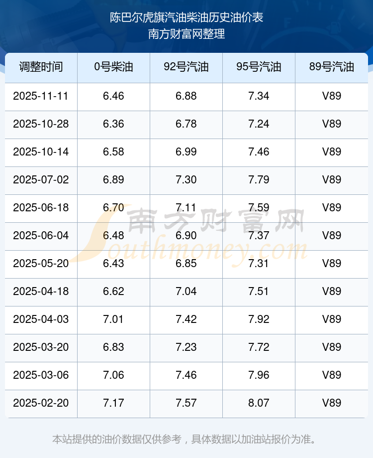 油价调整最新消息:下一轮油价调整时间11月24日24时。11月18日陈巴尔虎旗汽油柴油每升价格(11月11日调整后的价格):92号汽油为6.88元,涨了0.1元,涨幅达1.48%;95号汽油为7.34元,涨了0.1元,涨幅达1.38%;0号柴油为6.46元,涨了0.1元,涨幅达1.57%。