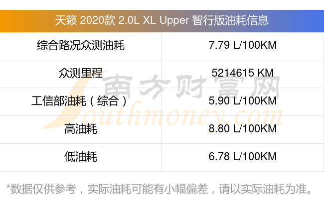 根据车主实测数据,该车型低油耗为6.78升每百公里,高油耗为8.80升每百公里,综合路况众测油耗为7.79升每百公里,工信部综合油耗为5.90升每百公里。