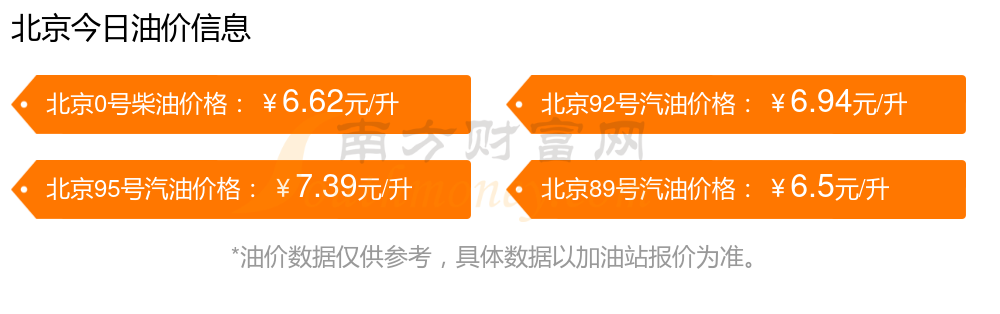11月18日北京汽油、柴油每升的价格具体为:本轮油价调整时间为11月11日,92号汽油是6.94元,上调了0.1元,上调幅达1.46%;95号汽油是7.39元,上调了0.11元,上调幅达1.51%;89号汽油为6.5元,上调了0.1元,上调幅达1.56%;0号柴油为6.62元,上调了0.1元,上调幅达1.53%。