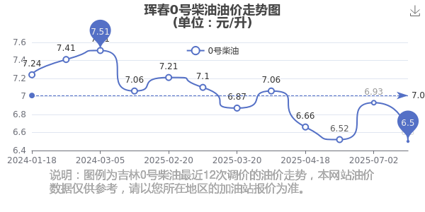 珲春汽油、柴油11月18日的价格是多少钱一升?具体如下:92号汽油为6.91元,上调了0.11元;95号汽油为7.45元,上调了0.11元;0号柴油为6.5元,上调了0.1元,本轮油价的调整时间为11月11日。