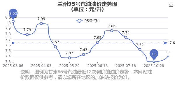 油价调整最新消息:11月18日兰州汽油、柴油每升价格:距离最近的油价调整时间是11月11日,92号汽油为6.94元,涨了0.11元,涨幅达1.61%;95号汽油为7.4元,涨了0.1元,涨幅达1.37%;89号汽油为6.41元,涨了0.09元,涨幅达1.42%;0号柴油为6.49元,涨了0.1元,涨幅达1.57%。兰州下一轮油价调整时间11月24日24时,距离现在还有6.34天。