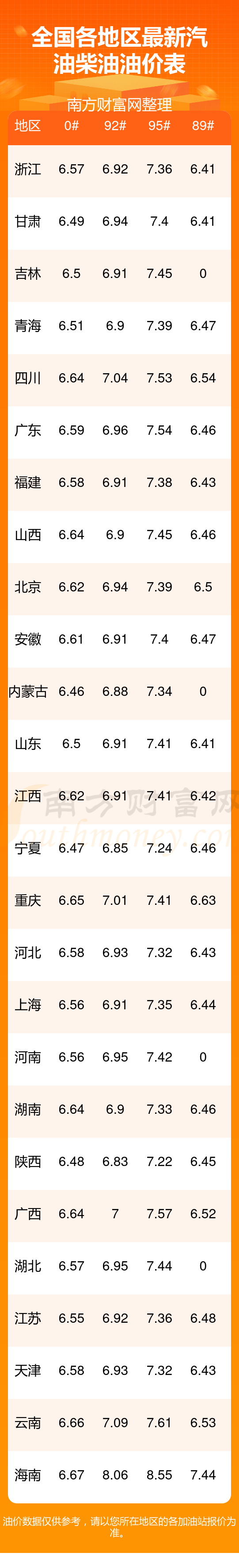 以上数据仅供参考,请以您所在地区的加油站实际售价为准。开云手机web版登录入口发布此信息的目的在于传播更多信息,对使用该油价信息所导致的结果概不承担责任。