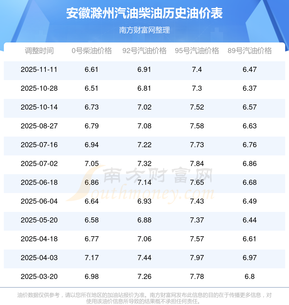 2025年汽油柴油历史油价调整一览表