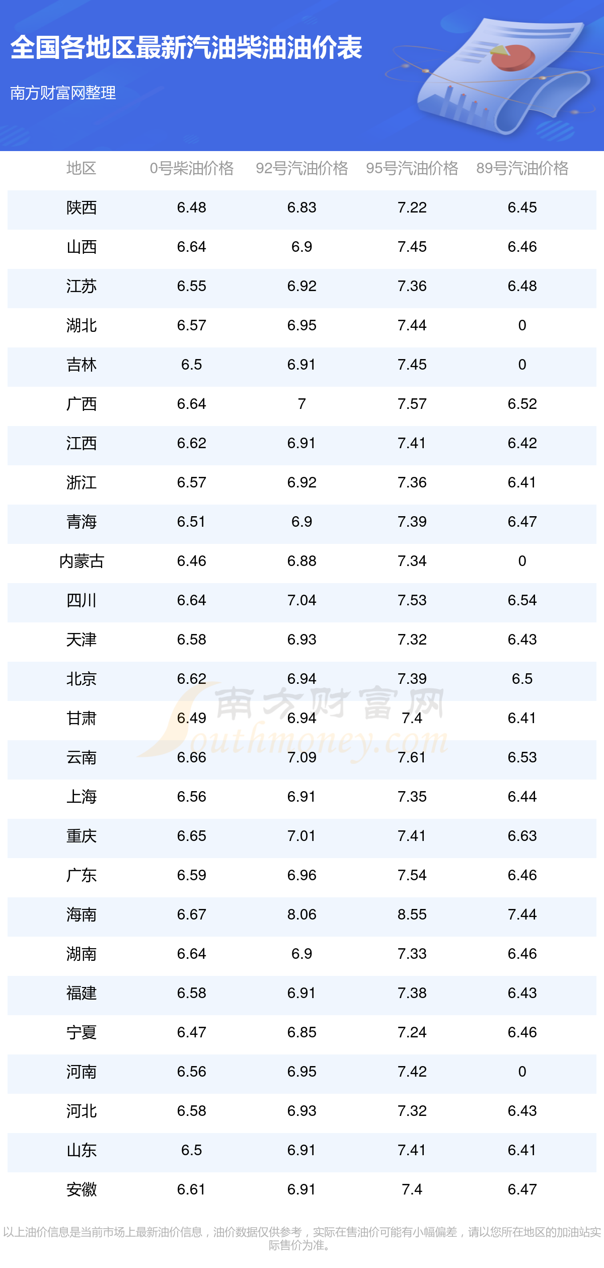 本轮油价调整时间为11月11日 ,调整后全国油价详情为: