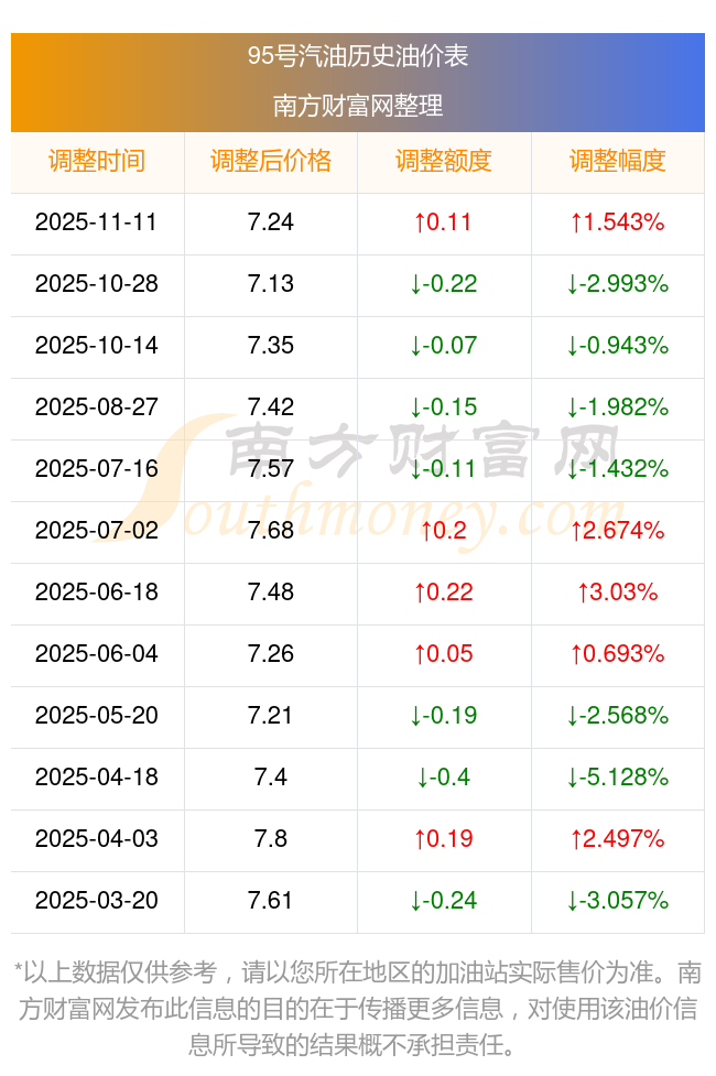 以上油价信息是当前市场上最新油价信息,油价数据仅供参考,实际在售油价可能有小幅偏差,请以您所在地区的加油站实际售价为准。