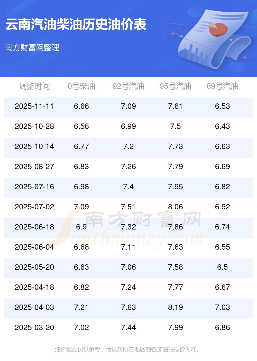 (11月18日)全国油价一览表