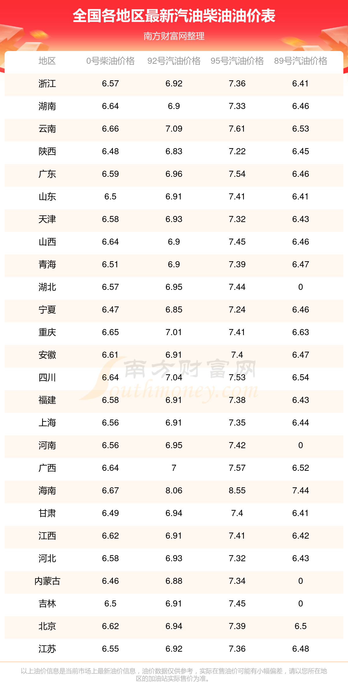 2025年11月18日全国各地油价调整及最新汽油价格表