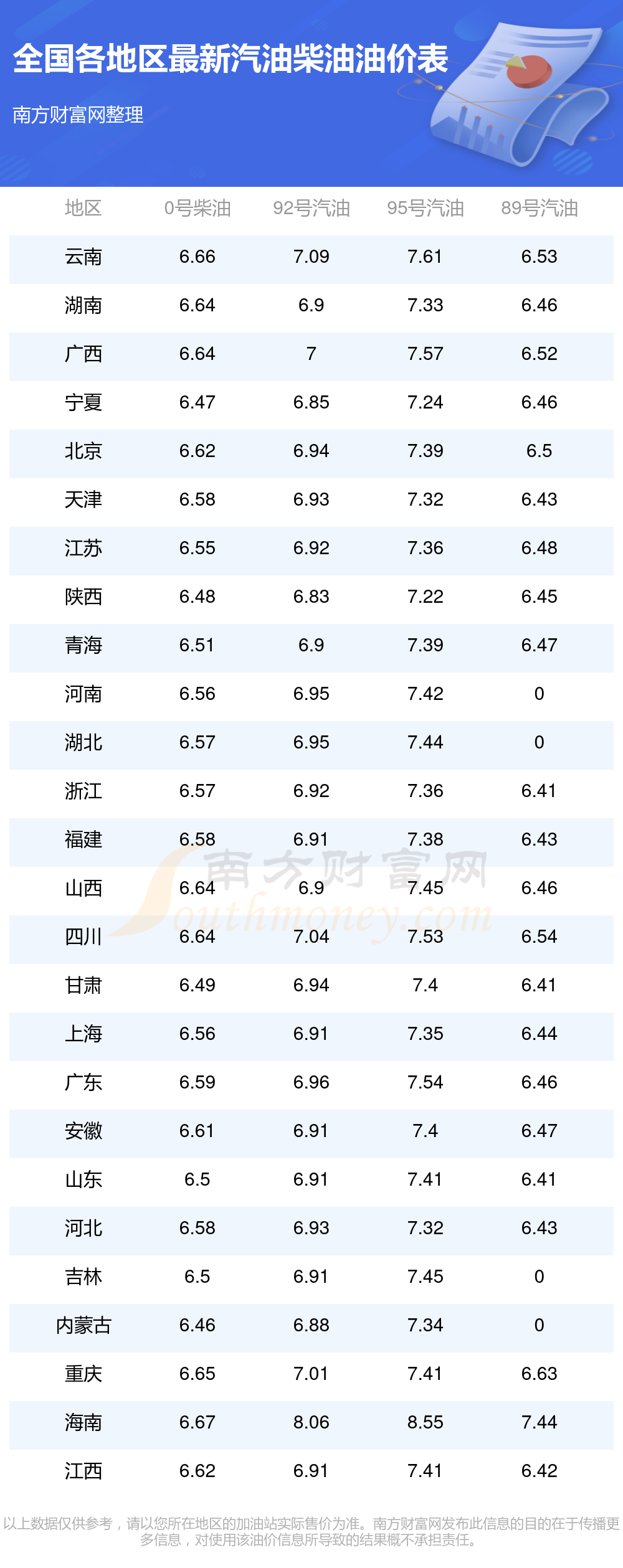 本站提供的油价数据仅供参考,具体数据以加油站报价为准。
