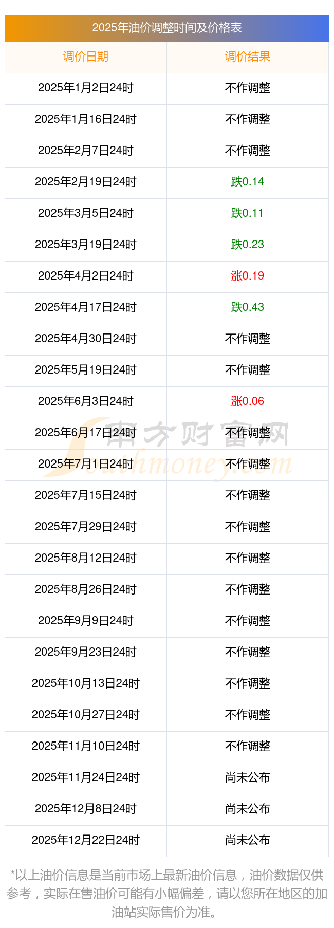 下一轮油价调整时间11月24日24时,距离现在还有6.28天。