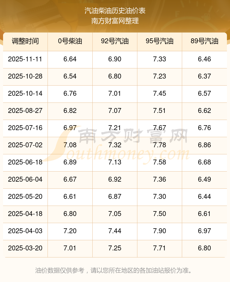 11月18日邵阳市95号汽油的价格是7.33元/升,油价于11月11日调整,相对上次调整时间10月28日的油价7.23元每升,共上升了0.11元,上升幅达1.462%。下一轮油价调整时间11月24日24时,距离现在还有6.27天。