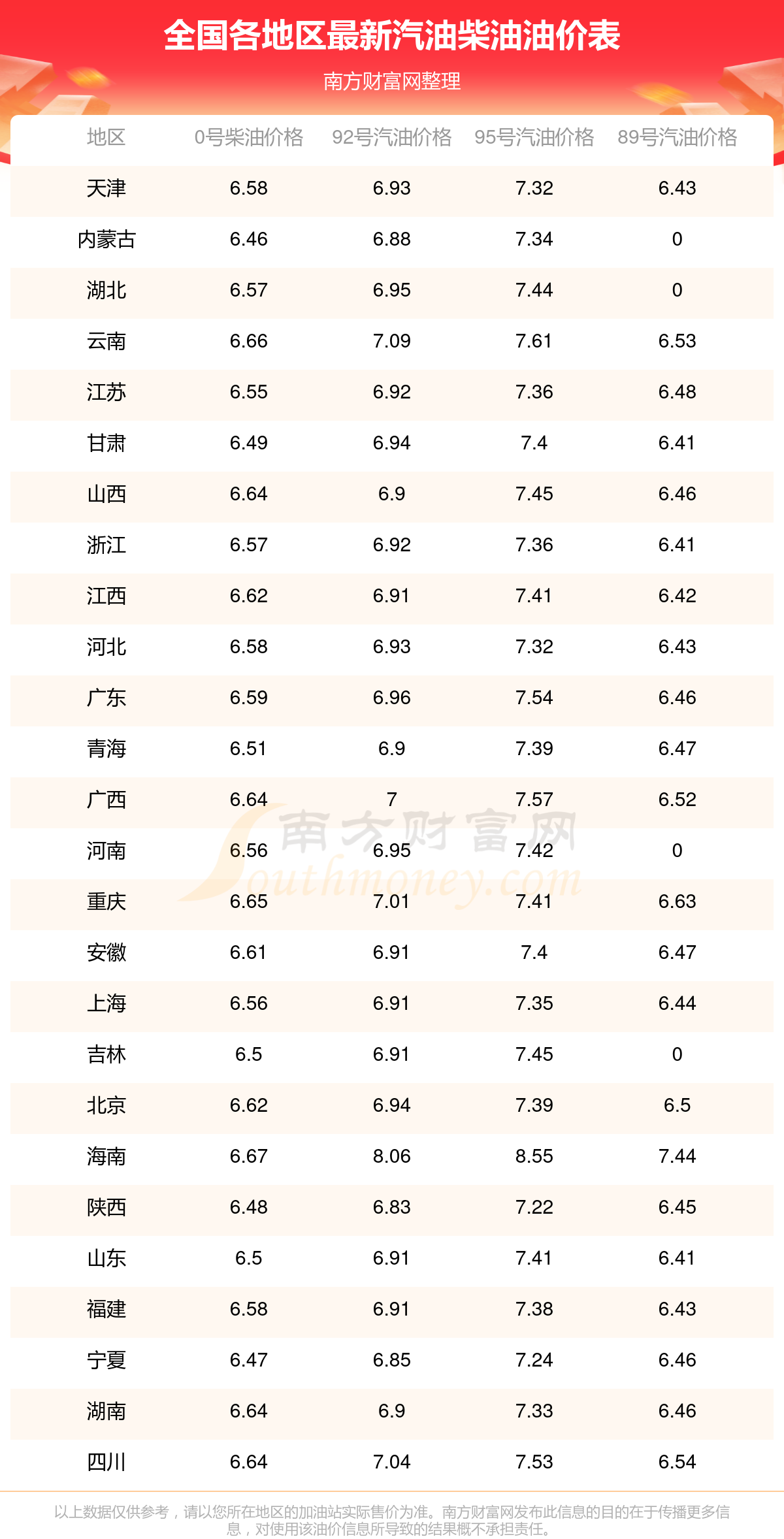 以上数据仅供参考,请以您所在地区的加油站实际售价为准。开云手机web版登录入口发布此信息的目的在于传播更多信息,对使用该油价信息所导致的结果概不承担责任。