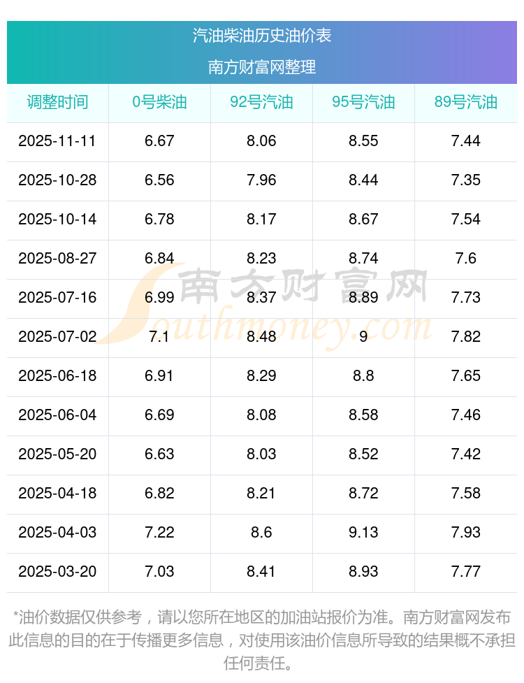 儋州95号汽油11月18日最新价格为8.55元/升,调整时间为11月11日,相对上次调整升了0.11元,升1.303%。下一轮油价调整时间11月24日24时,距离现在还有6.26天。
