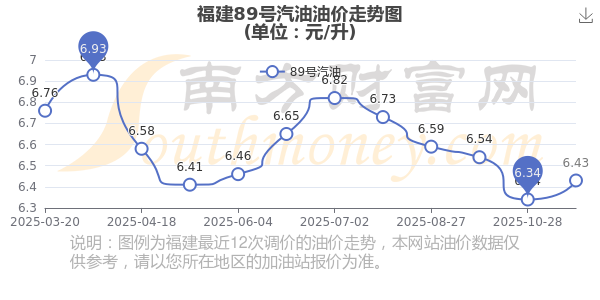 汽油价格调整最新消息:下一轮油价调整时间11月24日24时。福建汽油、柴油11月18日每升最新价格为:调整时间为11月11日,92号汽油为6.91元,增了0.1元;95号汽油为7.38元,增了0.11元;89号汽油为6.43元,增了0.09;0号柴油为6.58元,增了0.11元。