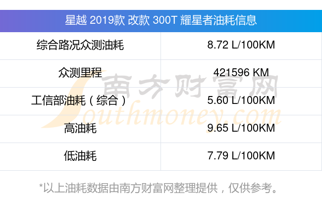 根据多位车主实测得出数据,该车型低油耗为7.79升每百公里,高油耗为9.65升每百公里,综合路况众测油耗为8.72升每百公里,工信部综合油耗为5.60升每百公里。