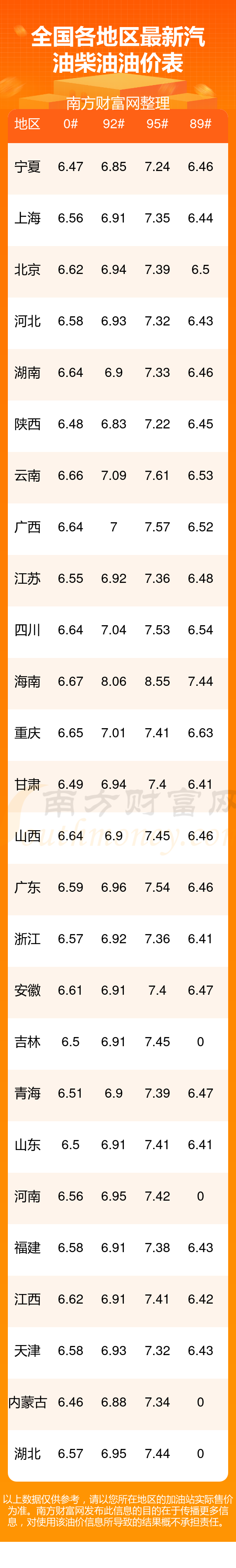 本站提供的油价数据仅供参考,具体数据以加油站报价为准。