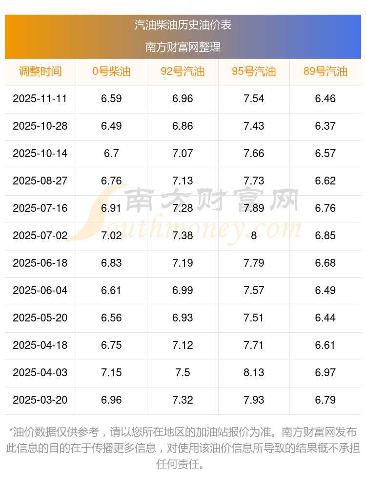 广东潮州95号汽油11月18日的价格为7.54元/升,本次油价的调整时间为11月11日,对比上次油价调整时间10月28日的价格7.43元/升,共涨了0.11元,涨幅达1.48%。下一轮油价调整时间11月24日24时,距离现在还有6.21天。
