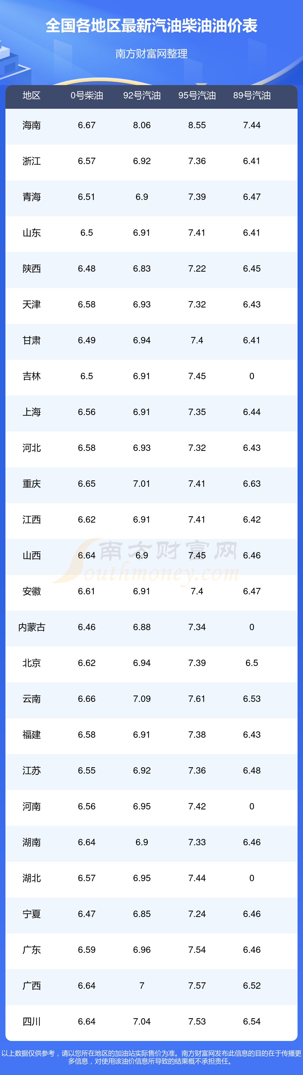 全国0号柴油11月18日最新平均价格为7元/升(根据11月11日调整后的价格计算)。其中,全国0号柴油最低为内蒙古,价格为6.46元/升;0号柴油最高为海南,价格为6.67元/升。,下一轮油价调整时间11月24日24时,距离现在还有6.21天。