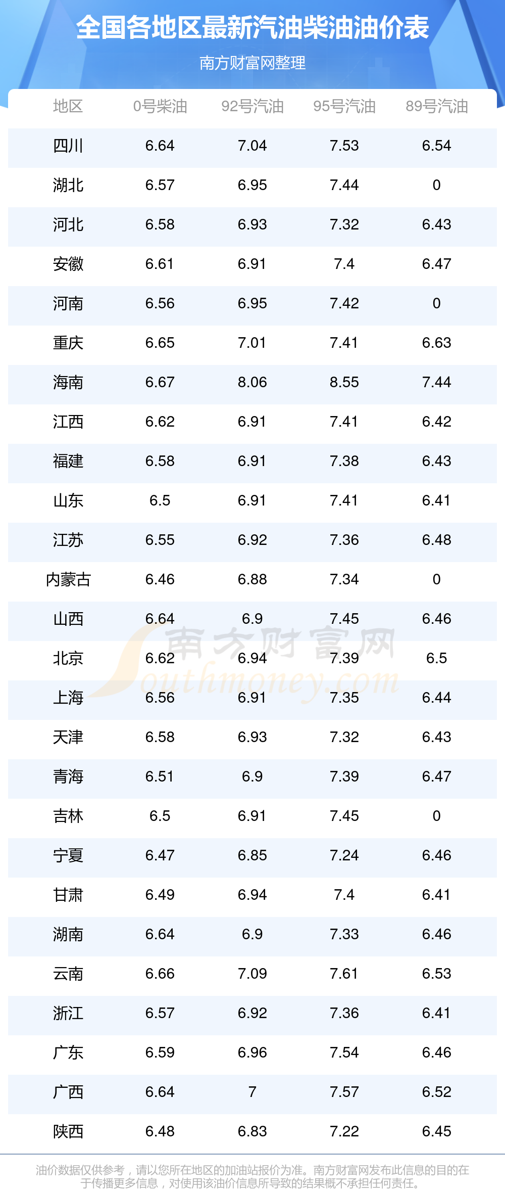 本站提供的油价数据仅供参考,具体数据以加油站报价为准。