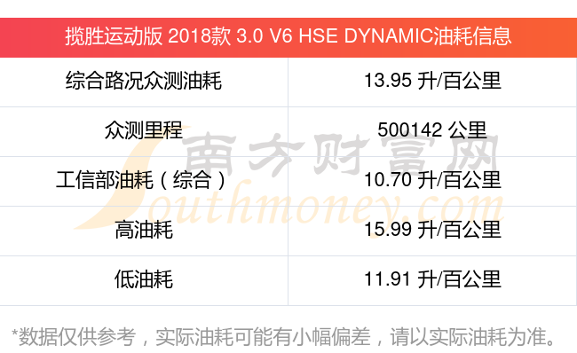 根据多位车主实测得出数据,该车型低油耗为11.91L/100km,高油耗为15.99L/100km,综合路况众测油耗为13.95L/100km,工信部综合油耗为10.70L/100km。